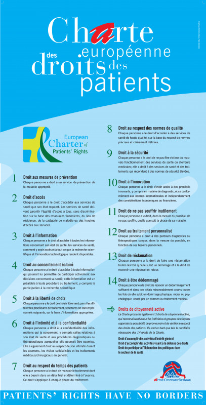 La charte européenne affichant les 14 droits des usagers a été distribuée, à chaque fois que des patients ou parents nous contactaient.