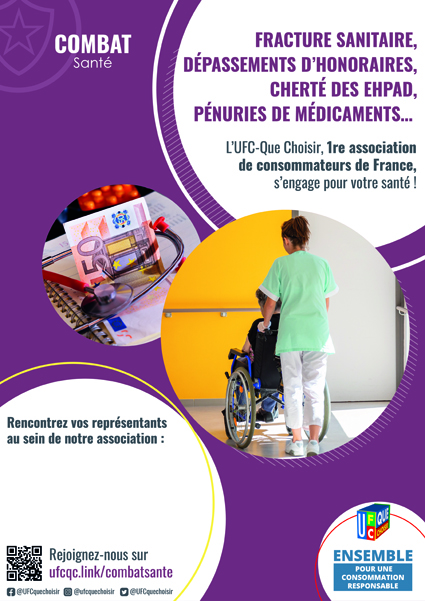 Vous assurez des représentations en matière de santé ? L'hôpital dans lequel vous intervenez sera peut-être intéressé par une affiche présentant l'action de l'UFC Que Choisir en la matière. C'est en tout cas la proposition qui a été faite aux AL de Montpellier et de l'Ariège. Les graphistes de la Fédération ont ainsi préparé cette affiche spéciale personalisable pour votre AL. Il suffit de suivre ce lien |